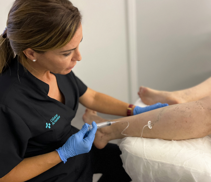 Mediante la introducción de un fármaco en el interior de la vena, se reconstruyen los tramos varicosos y mejora tanto la funcionalidad como la apariencia estética.